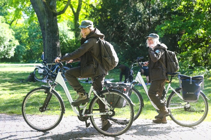 A team of 26 urban nature rangers works across parks, nature reserves, and protected landscapes throughout Berlin. They guide visitors, protect wildlife and habitats, and help connect people with the city’s diverse urban nature through education and on-site presence. (© Photo: Stiftung Naturschutz Berlin)